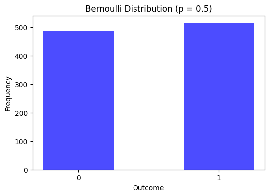 plt.title('Bernoulli Distribution (p = 0.5)')