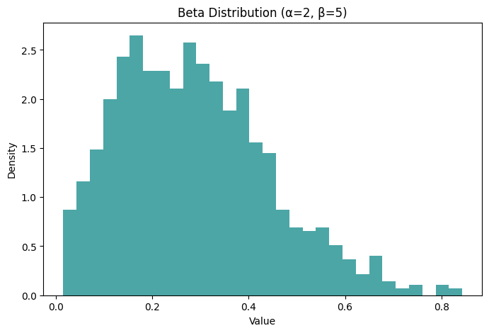 plt.title('Beta Distribution (α=2, β=5)')