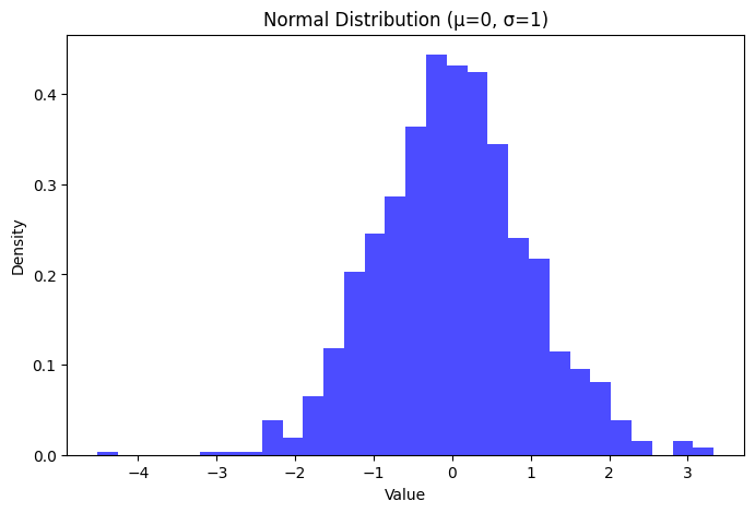 plt.title('Normal Distribution (μ=0, σ=1)')